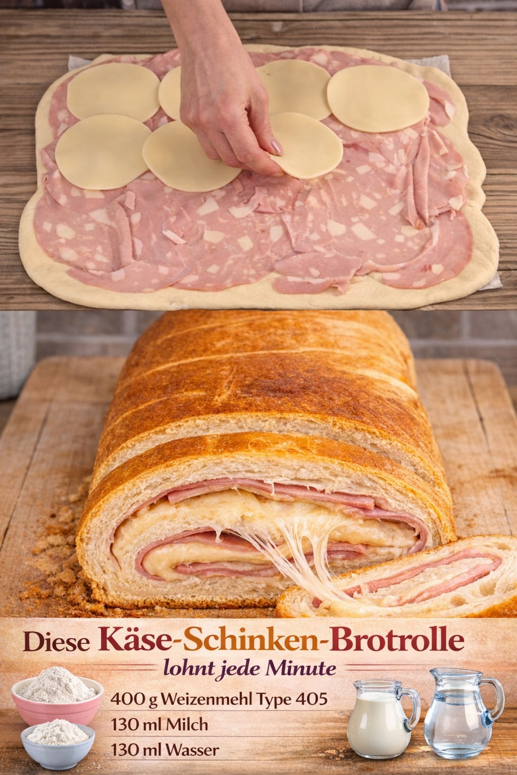 Diese gefüllte Käse-Schinken-Brotrolle lohnt wirklich jede Minute!