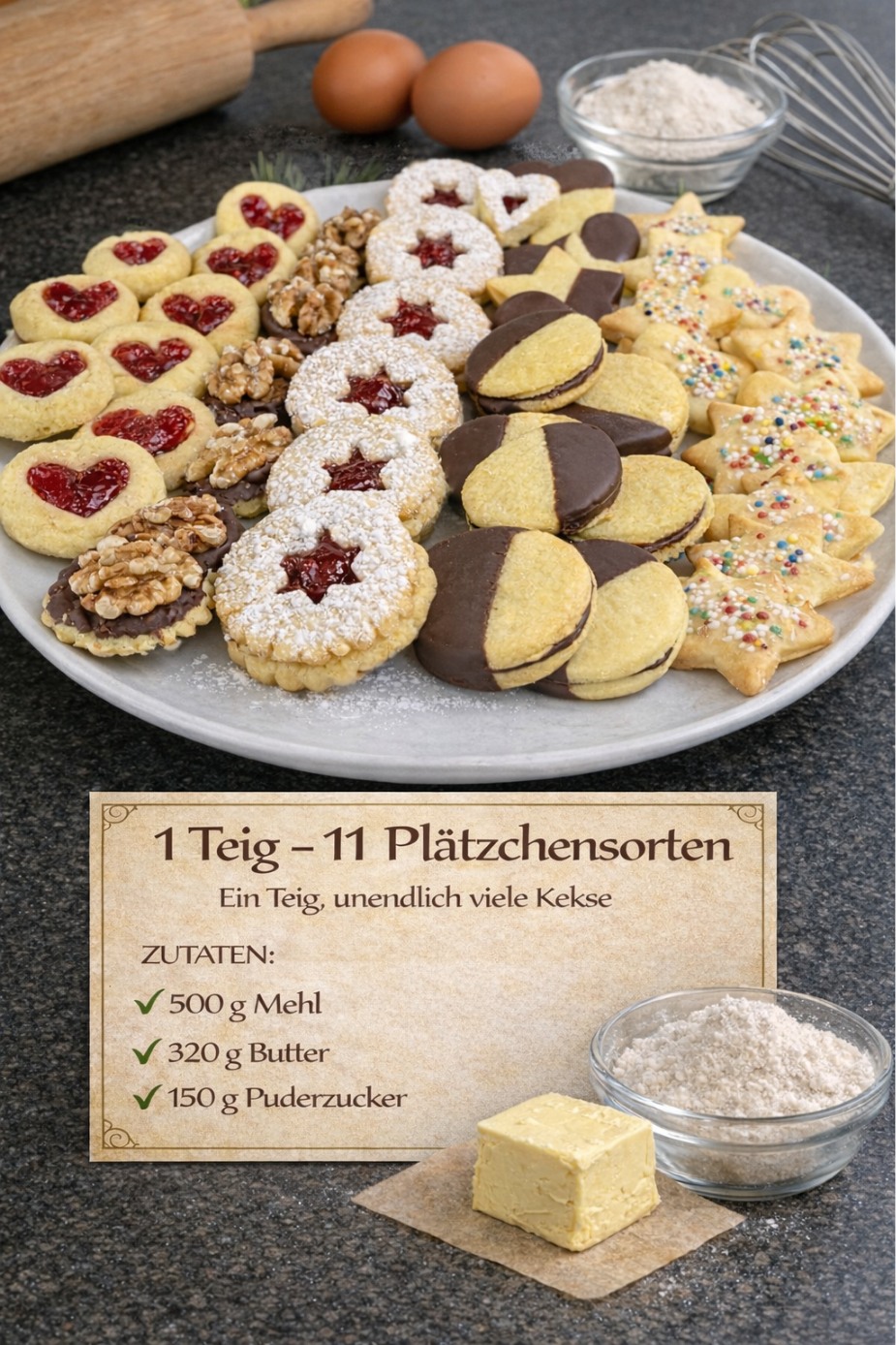 Einfaches Plätzchenrezept – 1 Teig für 11 Sorten Kekse
