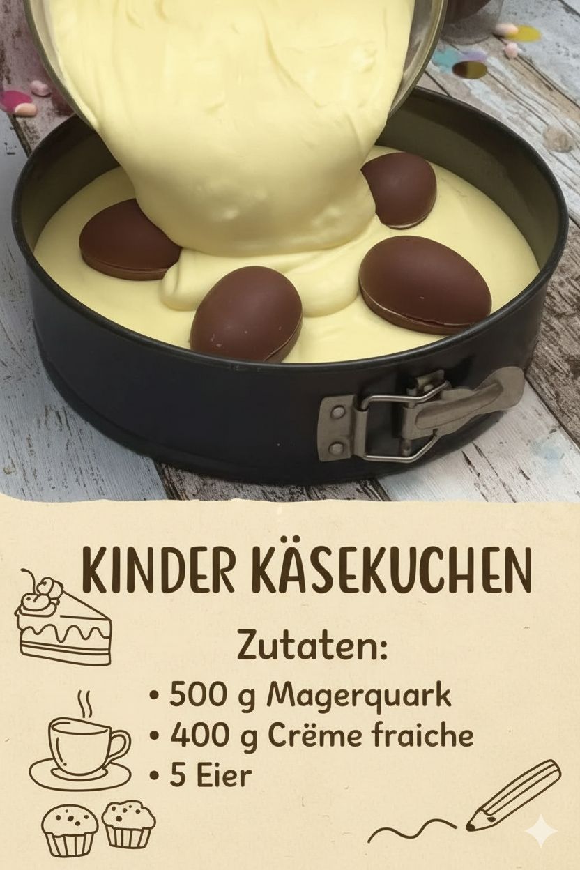 Dieser Kinder Käsekuchen verbindet das Beste aus zwei Welten: den klassischen Geschmack eines cremigen Quarkkuchens und die süße Überraschung von Schokolade. Ob zum Geburtstag, Sonntagskaffee oder einfach als kleine Belohnung – er bringt Freude in jede Küche.