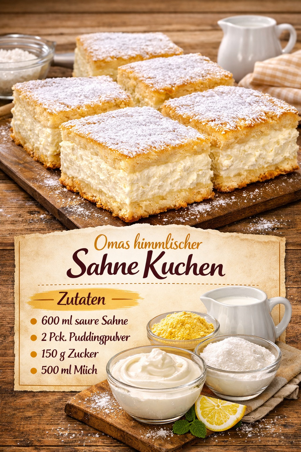 Manche Rezepte haben einfach diesen ganz besonderen Zauber – sie erinnern an Kindheit, an gemütliche Nachmittage und an den Duft von frisch gebackenem Kuchen, der durchs ganze Haus zieht. Genau so ein Klassiker ist dieser Sahne-Kuchen nach Omas Art. Mit seinem mürben Teig und der wunderbar cremigen, leicht zitronigen Füllung ist er ein echtes Wohlfühldessert, das Generationen begeistert hat.