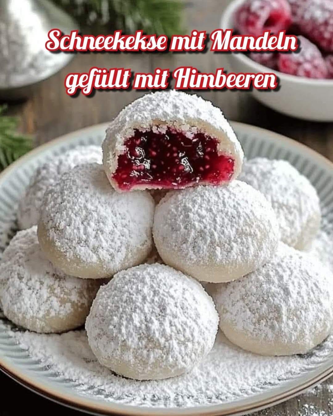 Schneekekse mit Mandeln gefüllt mit Himbeeren