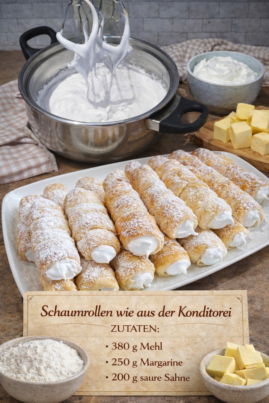Die Schaumrollen schmecken auch am nächsten Tag noch sehr gut.